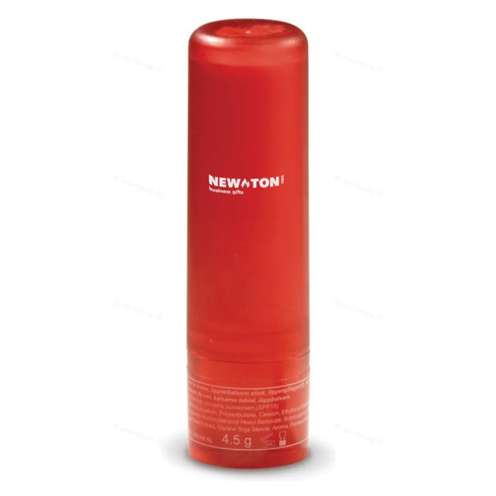 Бальзам для губ в круглой палочке. На дне палочки есть поворотный механизм для поднятия бальзама. Доступен в прозрачных цветах, а также в жестком черном или белом цвете.