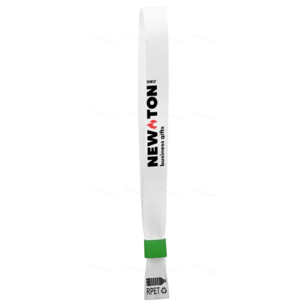 Изготовленный на заказ фестивальный браслет из RPET полиэстера с цветным пластиковым замком безопасности. С двух сторон нанесена сублимационная печать графики. Минимальный заказ: 100 шт.