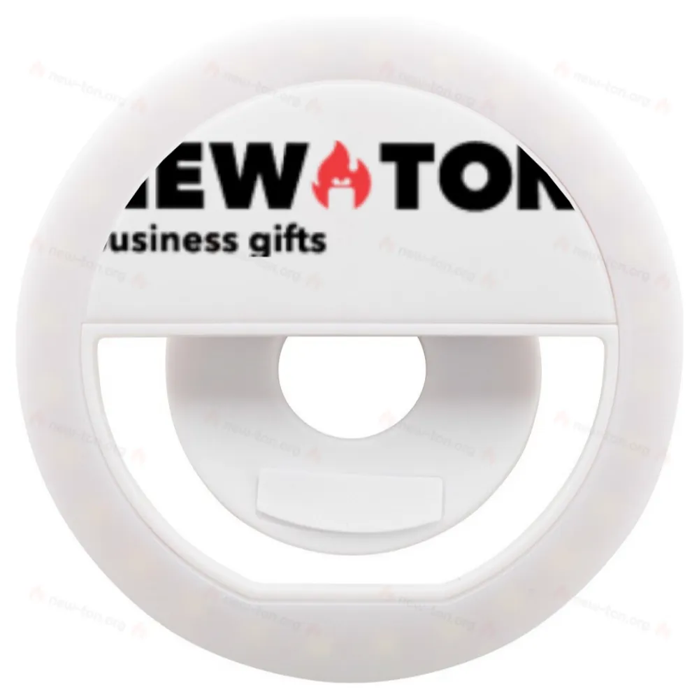 Пластиковая кольцевая подсветка для селфи с 28 светодиодами для мобильных телефонов. С 3 регулируемыми уровнями яркости и встроенным аккумулятором. В комплекте USB-кабель для зарядного устройства.