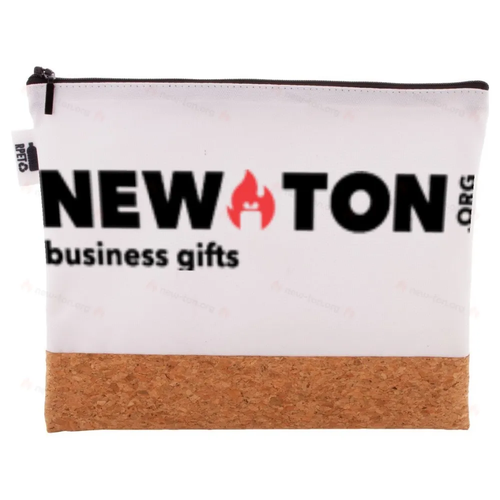 Изготовленная на заказ косметичка на молнии из полиэстера 600D RPET и натуральной пробки. С сублимационной печатной графикой по всему периметру. MOQ: 50 шт.
