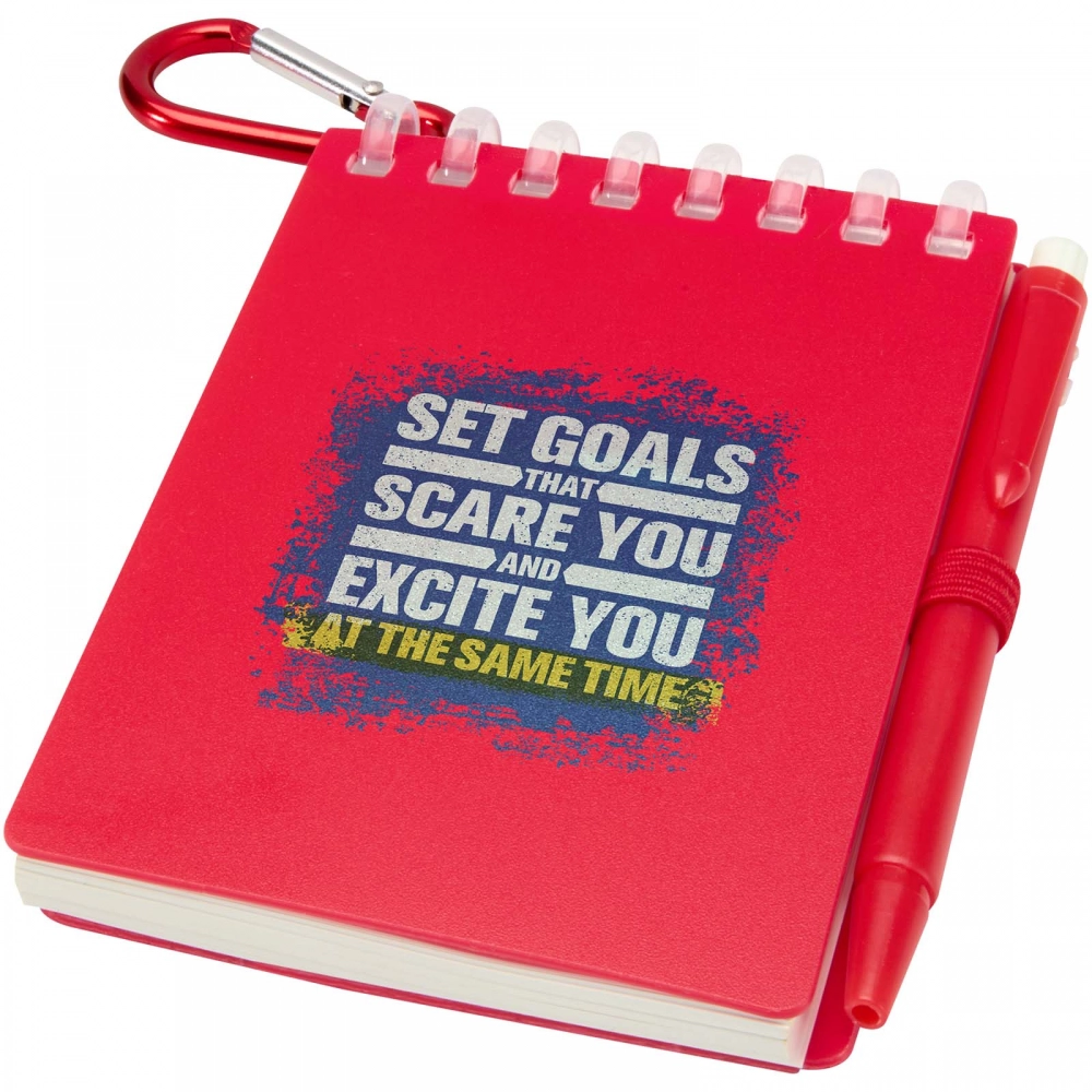 Набор из блокнота и ручки Lig Mini — это компактный и практичный помощник для заметок на ходу. Спиральный блокнот имеет мягкую обложку из переработанного пластика и 70 чистых листов водостойкой каменной бумаги плотностью 120 г/м², что делает его идеальным для использования на улице. С закругленными углами и встроенной петлей для ручки, он соответствует тренду на мини-размеры, оставаясь при этом функциональным. Шариковая ручка, выполненная из переработанного ABS-пластика, пишет черными чернилами и обеспечивает длину письма в 250 метров. Цветная металлическая петля позволяет легко прикрепить набор к рюкзаку, сумке или брелоку, что делает его идеальным для долговечных и портативных заметок. Размер блокнота: 11 × 7,5 см.