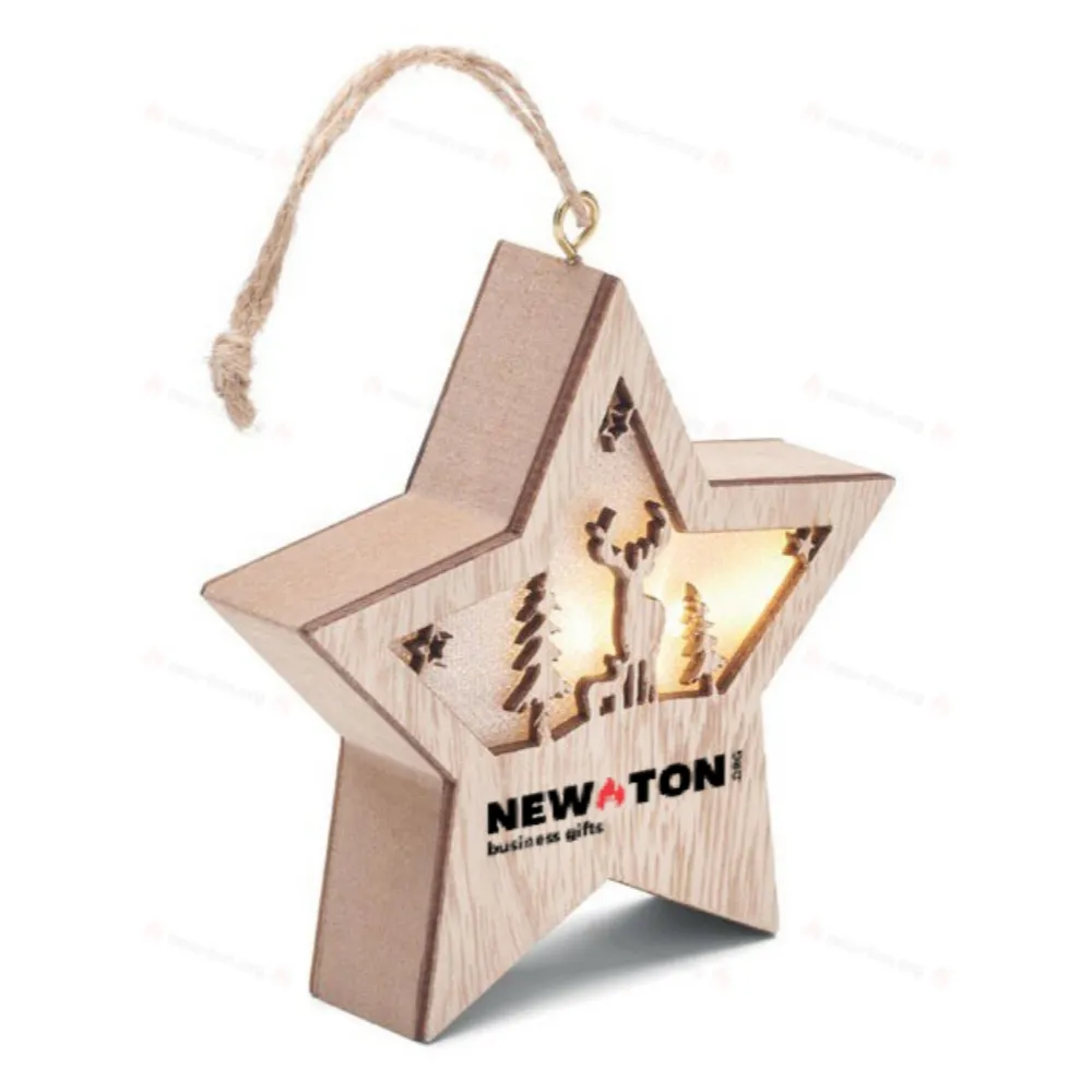 Декорированная рождественская звезда из МДФ со встроенным фонариком и шнурком для подвешивания. В комплект входят 3 батарейки LR44.