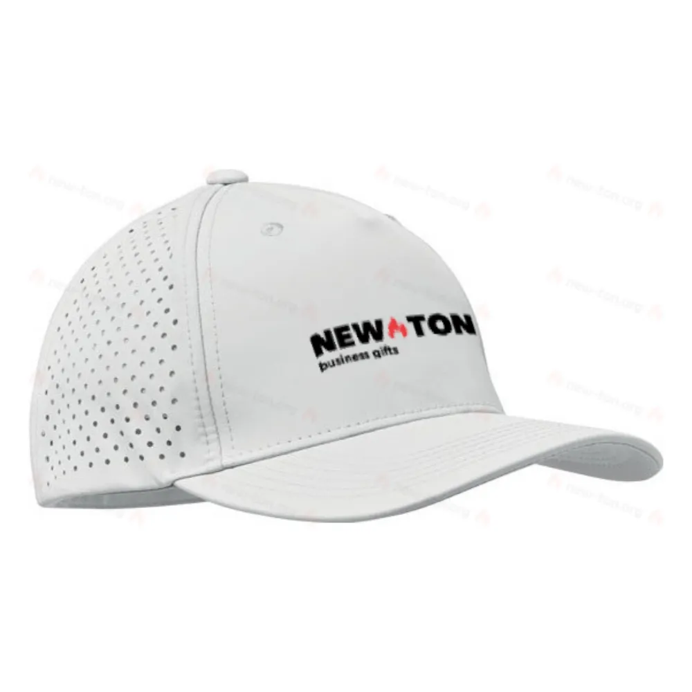 Бейсболка 5 клиньев из полиэстера с регулируемой застежкой и перфорацией. 2 люверса в цвет бейсболки. Быстро сохнущий материал с влагоотталкивающим эффектом. 130 гр/м²