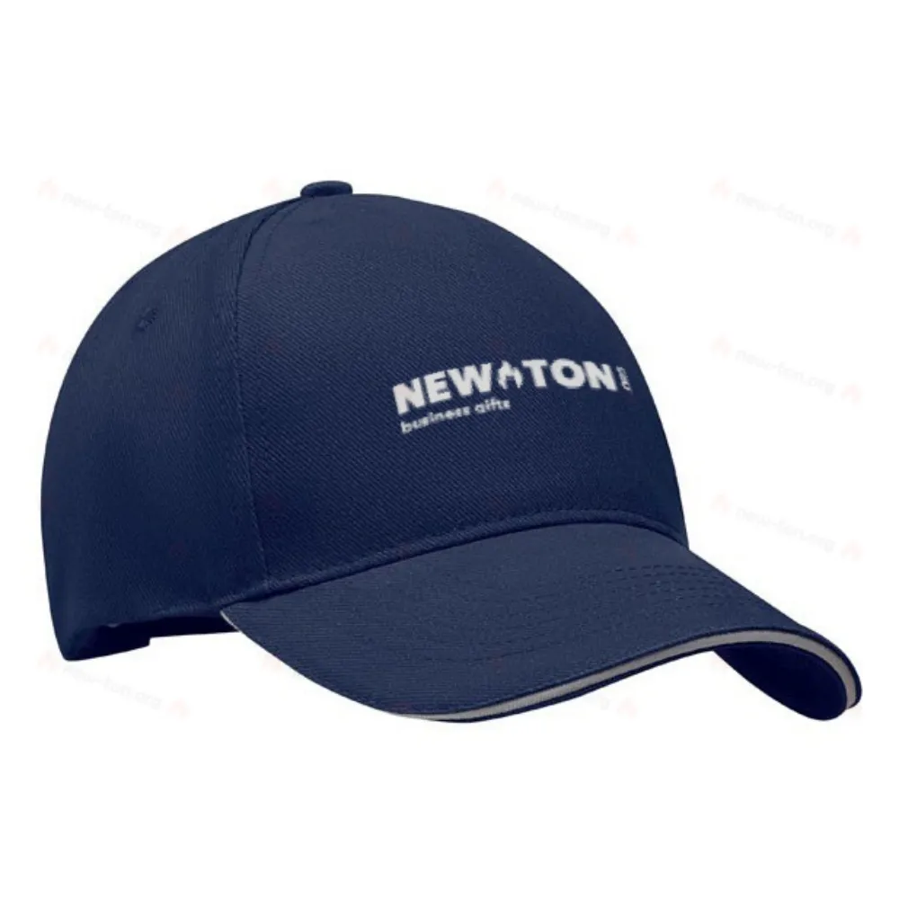 Бейсболка 5-клинка из плотного матового хлопка 260 гр/м2 с металлической застежкой. 4 вышитых люверса соответствующего цвета. Размер 7 1/4.