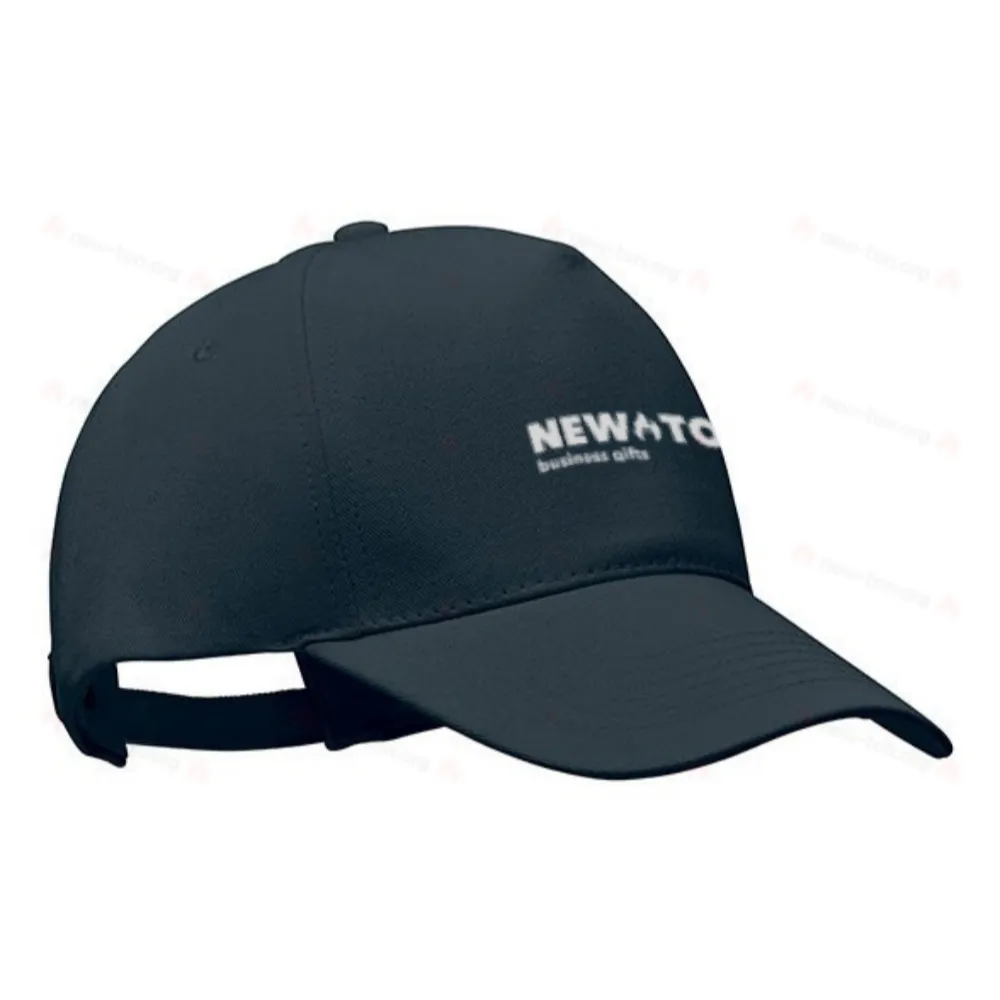 Бейсболка 5-клинка из органического хлопка плотностью 250 гр/м² с металлической регулируемой застежкой на ремешке.
