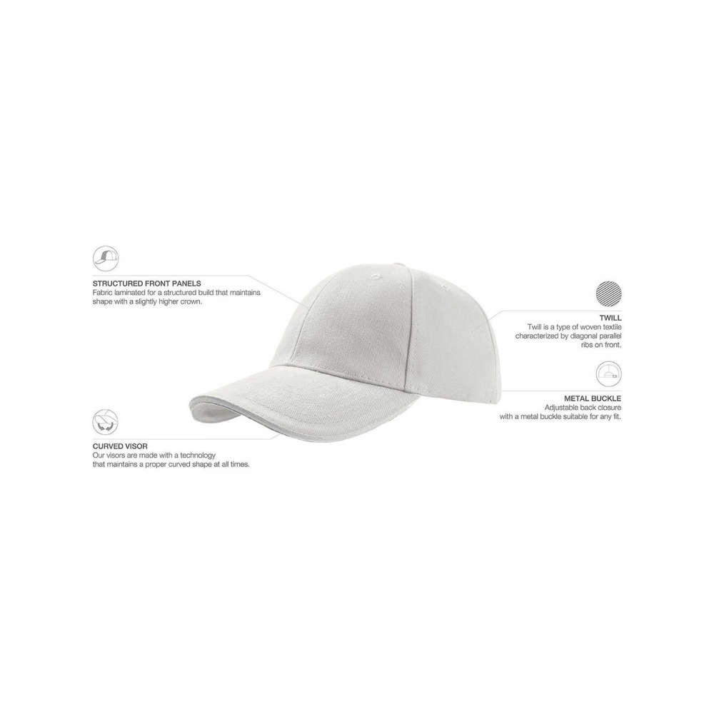 Кепка из 100% плотного расчесанного хлопка. 6 панелей, застежка с металлической пряжкой, потоотводящая лента, прошитые люверсы, укрепленная передняя панель, изогнутый козырек с шестью строчками. Универсальный размер. Съемная этикетка.