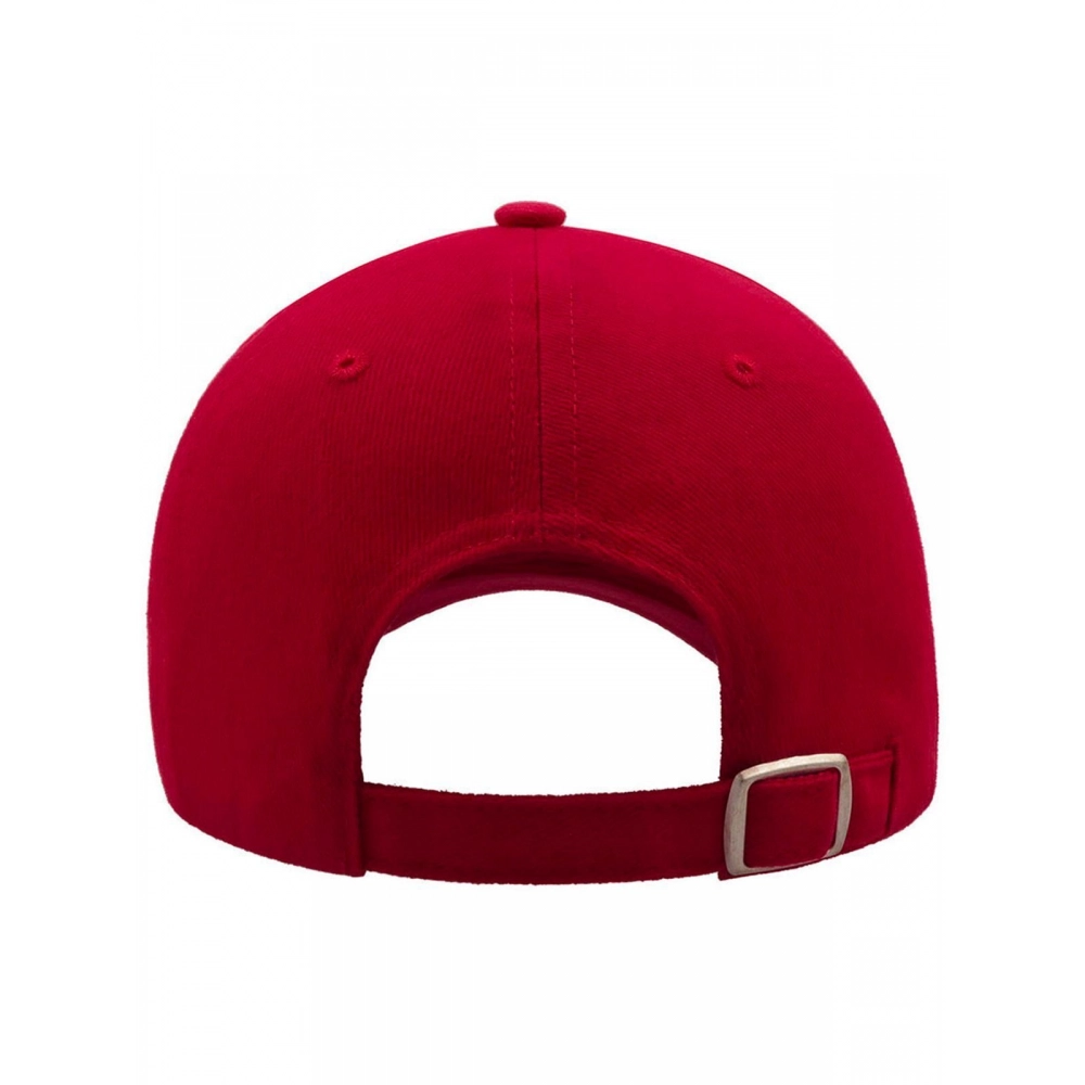 Кепка из 100% плотного расчесанного хлопка. 6 панелей, застежка с металлической пряжкой, потоотводящая лента, прошитые люверсы, укрепленная передняя панель, изогнутый козырек с шестью строчками. Универсальный размер. Съемная этикетка.