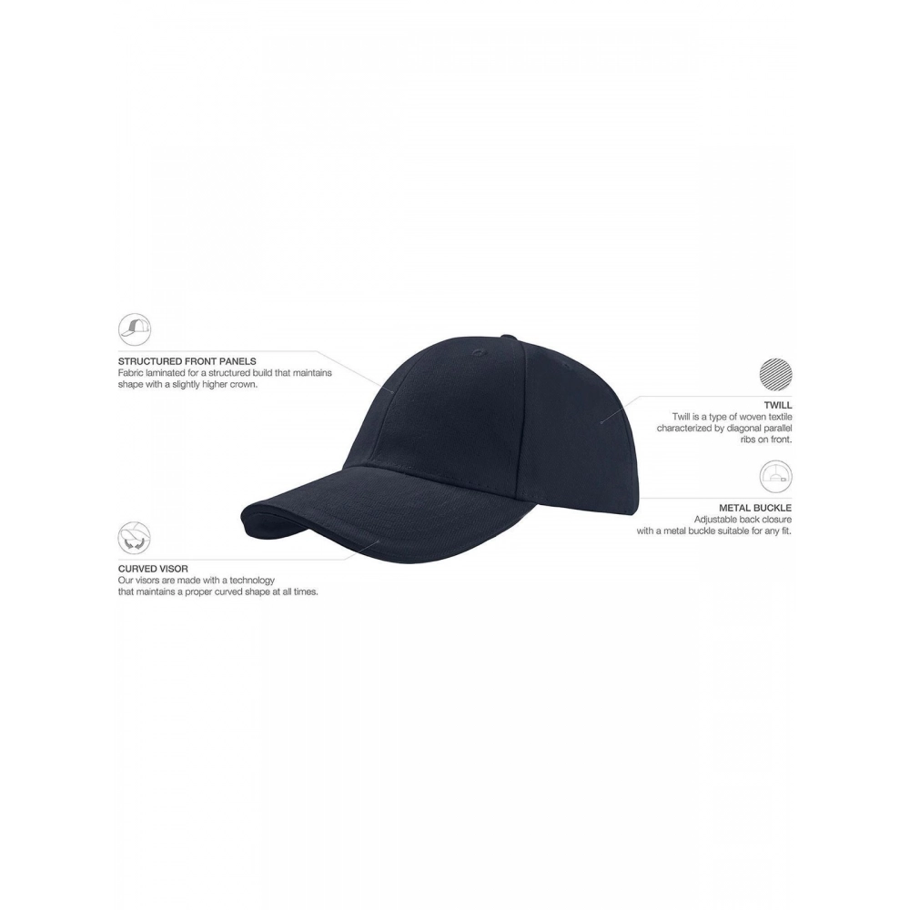 Кепка из 100% плотного расчесанного хлопка. 6 панелей, застежка с металлической пряжкой, потоотводящая лента, прошитые люверсы, укрепленная передняя панель, изогнутый козырек с шестью строчками. Универсальный размер. Съемная этикетка.