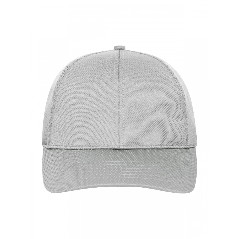 100% полиэстер. Спортивная кепка из мягкой сетки с 6 панелями, 4 вышитыми вентиляционными отверстиями, 6 декоративными строчками на козырьке, ламинированными передними панелями, подкладкой из атласной ленты и застежкой на липучке.