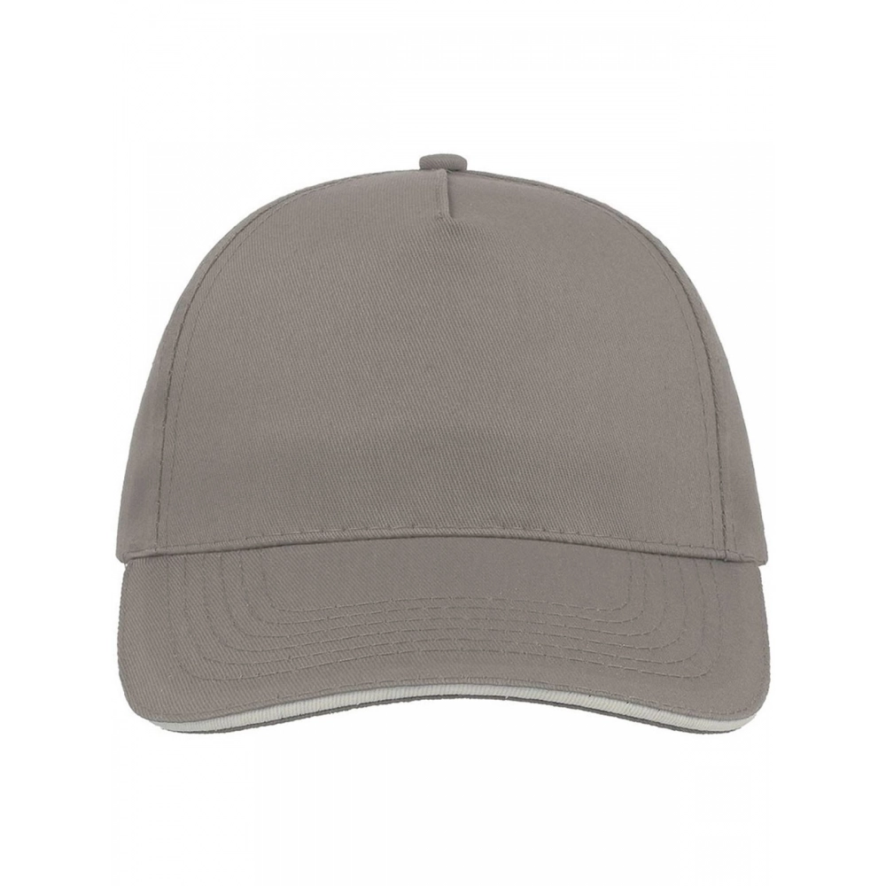 100% хлопок. Кепка из 5 панелей, застежка на липучке, жесткая передняя панель, изогнутый козырек, 6 строчек на козырьке, универсальный размер.