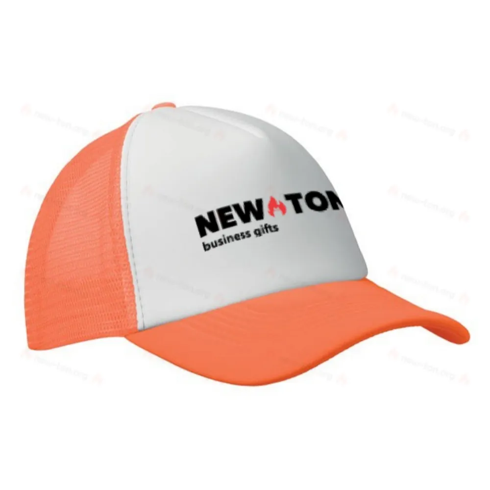 Кепка с 5 клиньями из полиэстера 140-150 гр/м² с регулируемой пластиковой застежкой. Белая передняя панель и цветной козырек с поролоновой вставкой. Остальные панели из цветной сетки. Размер 7 1/4.