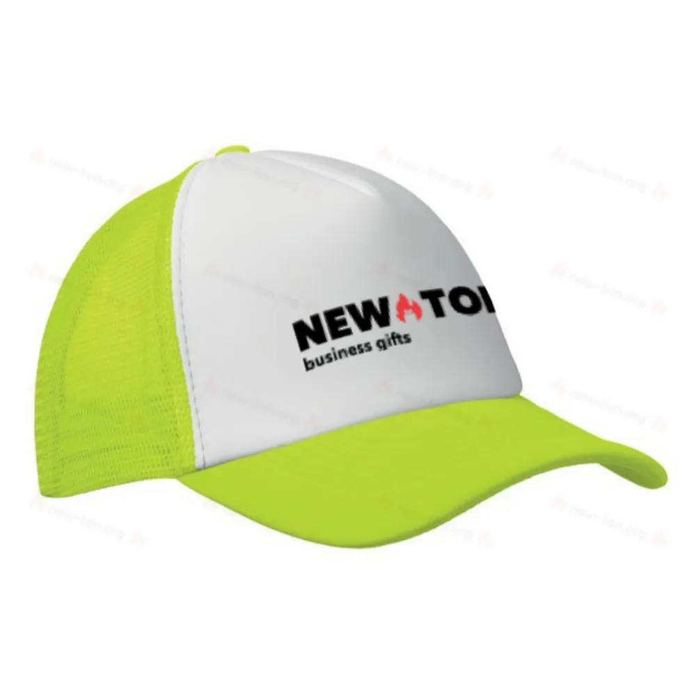 Кепка с 5 клиньями из полиэстера 140-150 гр/м² с регулируемой пластиковой застежкой. Белая передняя панель и цветной козырек с поролоновой вставкой. Остальные панели из цветной сетки. Размер 7 1/4.