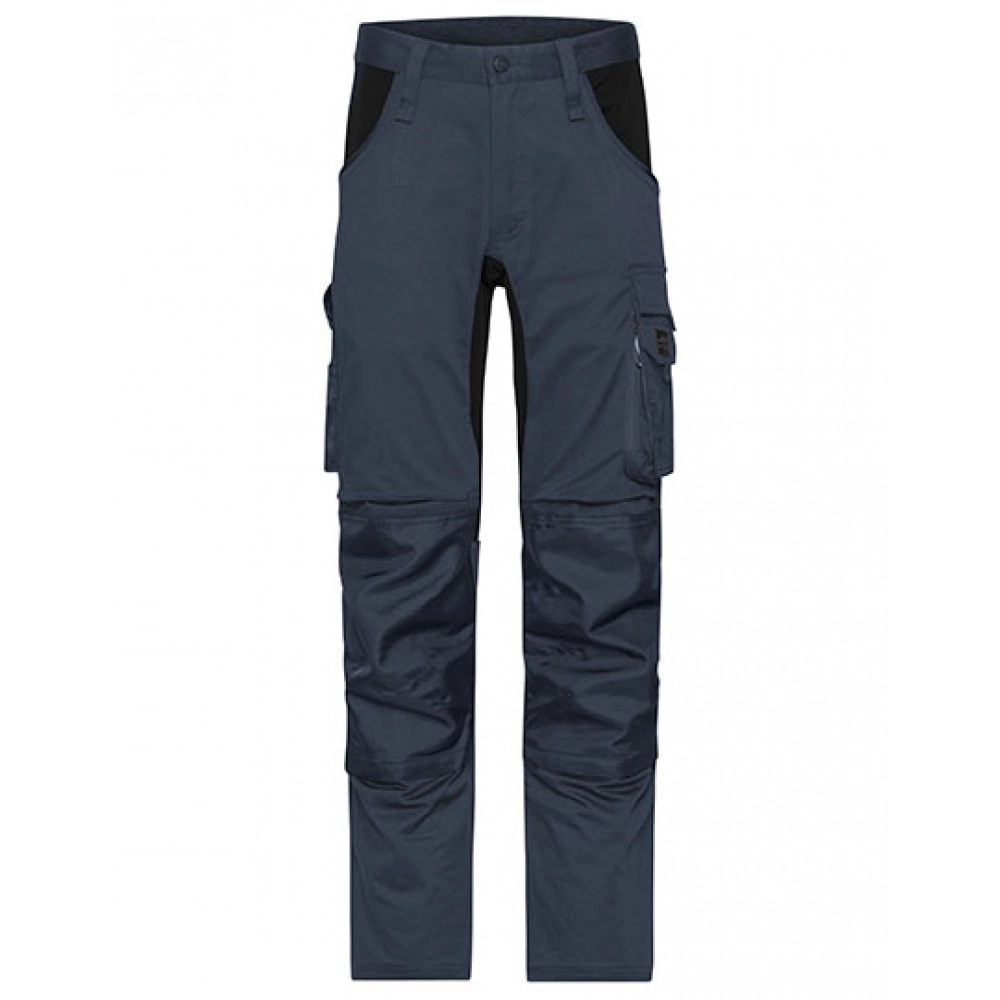 Прочный, износостойкий, эластичный смесовый материал из переработанного полиэстера, органического хлопка и эластана | Повышенный комфорт благодаря эластичным вставкам | Пояс с шлевками для ремня | Усиленные вставки CORDURA® на карманах для наколенников, задних карманах и отверстиях карманов | Разрывостойкий тройной шов | Прорезные карманы, различные карманы для инструментов | Карман на молнии | Карман для складного метра, карманы для ручек, карман для мобильного телефона | Молнии: YKK