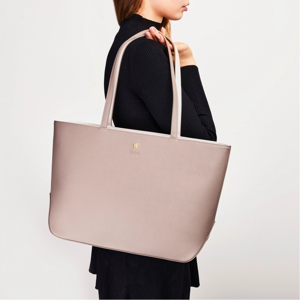 Знаменитая линия Festinas `Mademoiselle` в этом сезоне дополнена новым предложением женских сумок. Эта большая сумка-тоут изготовлена из красивой текстурированной сафьяновой веганской кожи (PU). Каждая деталь выполнена с особой тщательностью, как, например, культовая золотая пластина signature F, присутствующая во всей коллекции и подчеркнутая красивым тиснением логотипа FESTINA. Красиво оформленный продукт отличается красочными, контрастными и очень практичными интерьерами, просторными интерьерами. Эта специальная сумка закрывается на магнитную кнопку и имеет очень большое внутреннее отделение на молнии, идеально подходящее для ноутбука и других ценных вещей. Он также оснащен другим плоским карманом и плоским карманом на молнии, идеально подходящим для организации документов и других предметов первой необходимости. Эта бежевая версия имеет контрастный белоснежный интерьер, соответствующий одноименному кошельку.