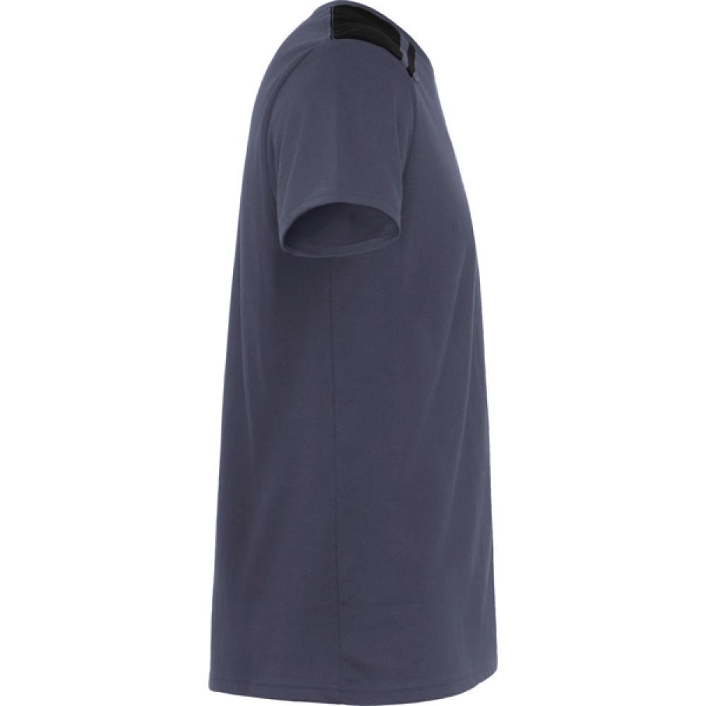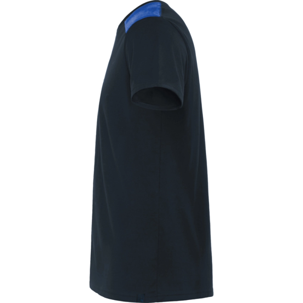 Футболка комбинированного цвета с короткими рукавами. · Круглая горловина с контрастными закрытыми внутренними швами. · Контрастные плечевые вставки и детали.