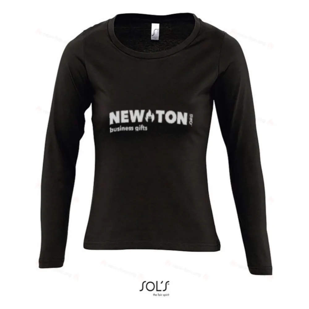 SOL'S MAJESTIC, женская футболка с длинным рукавом и круглым вырезом, из 100% полу-причесанного хлопкового джерси 150, усиленная лентой на шее, круглый воротник из эластичного ребра, глубокий вырез, приталенный крой, безреберные манжеты, сшита и обработана, (1) серый меланж: 85% хлопок / 15% вискоза. Для подбора размера обратитесь к таблице размеров в разделе документации по продукту.