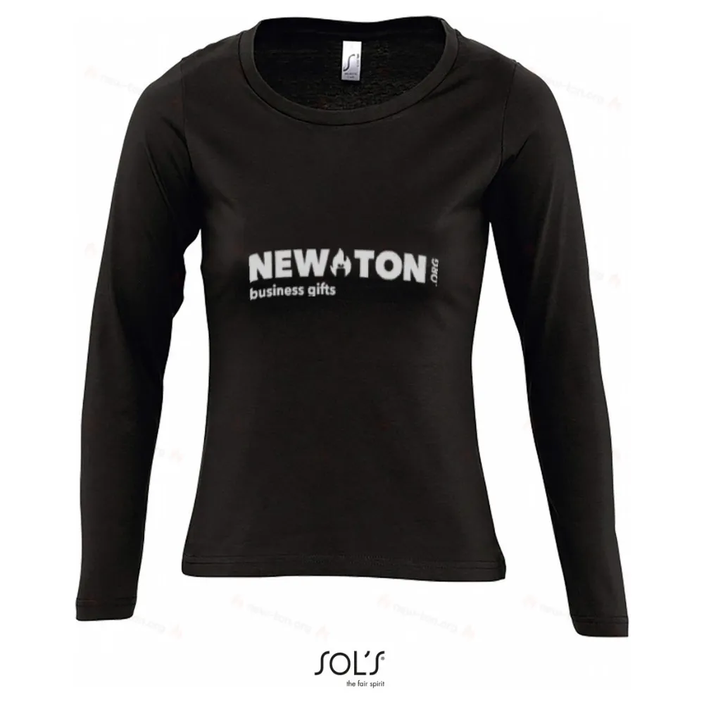 SOL'S MAJESTIC, женская футболка с длинным рукавом и круглым вырезом, из 100% полу-причесанного хлопкового джерси 150, усиленная лента на шее, круглый воротник из эластичного ребра, глубокий вырез, приталенный крой, безреберные манжеты, сшита и сшита, (1) серый меланж: 85% хлопок / 15% вискоза. О размерах, пожалуйста, обратитесь к таблице размеров в разделе документации по продукту.