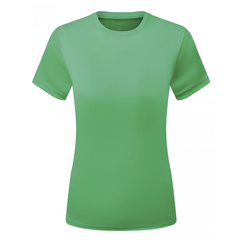 Футболка для активного отдыха | Катионное окрашивание | Переработанный полиэстер | Влагоотводящая ткань | Эластичная | Круглый вырез | Короткий рукав | Легкая | Женственный крой | Двойная строчка на подоле и рукавах | Текстурированная ткань