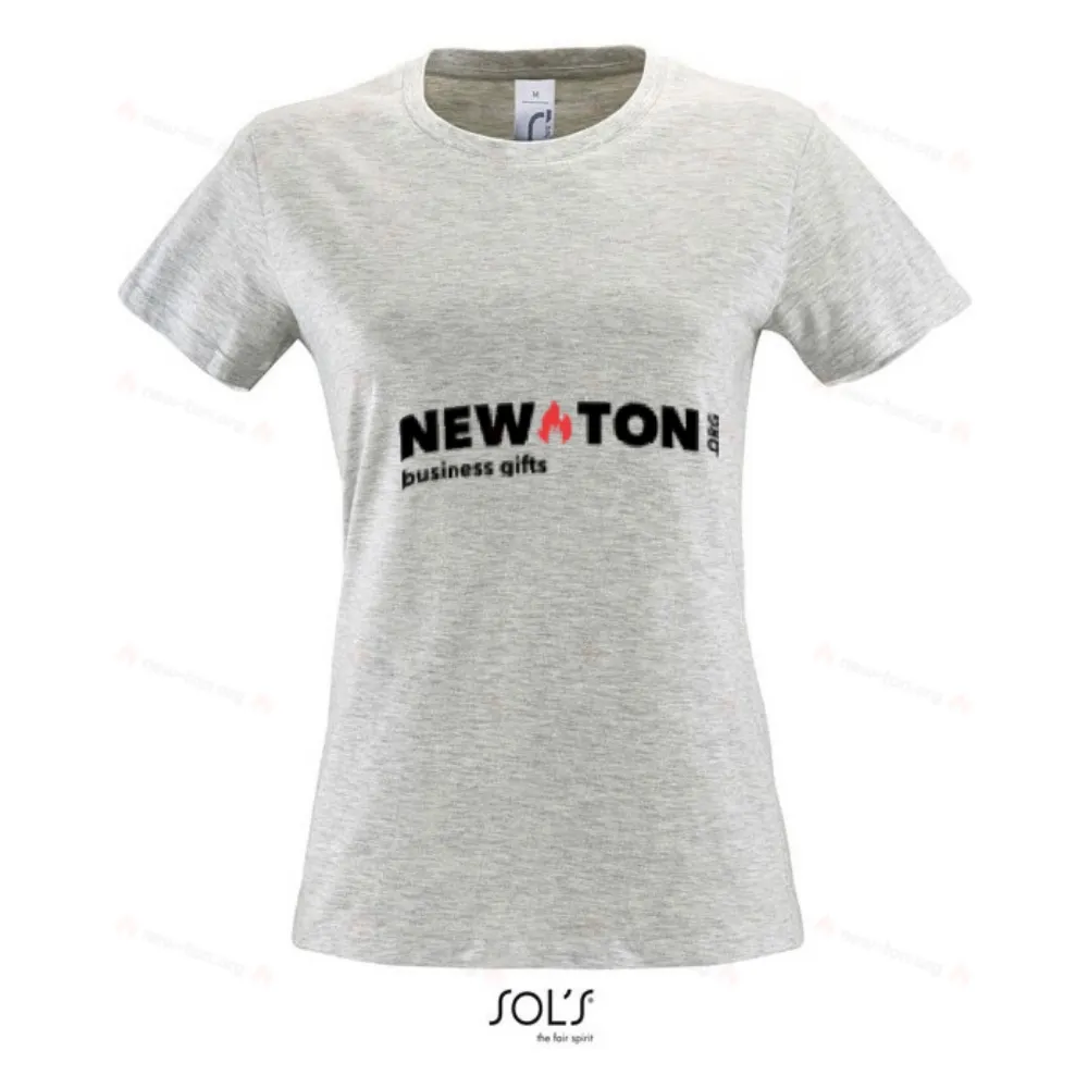 SOL'S REGENT WOMEN, Женская футболка с круглым вырезом, 100% полушерстяной хлопок Ringspun Jersey 150, Оборчатая горловина, Оборчатый воротник, Короткие рукава, Облегающий крой, Крой и шитье, (1) пепельный : 98% хлопок / 2% вискоза, (2) серый меланж : 85% хлопок / 15% вискоза. Для соответствия размеров, пожалуйста, обратитесь к таблице размеров в разделе документации к товару.