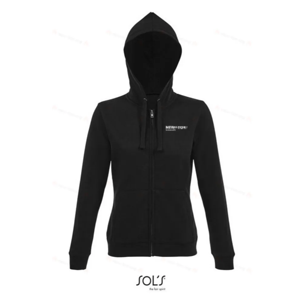 ЖЕНСКАЯ ТОЛСТОВКА SOL'S SPIKE. Женская толстовка на молнии, 80% хлопок - 20% полиэстер. Мягкая подкладка, Внешняя часть: 100% хлопок ФЛИС 280 LSF (ткань с низким усадком), Рукава втачные, 2 передних кармана-кенгуру, Выкройка и пошив, Подкладка капюшона с шнурком в тон, 2x2 ребристые манжеты и низ. Полумесяц внутри воротника, Обработанный шов на шее, Молния YKK. OEKO-TEX®. Продаётся только с нанесением. Для подбора размера обратитесь к таблице размеров в разделе документации по продукту.