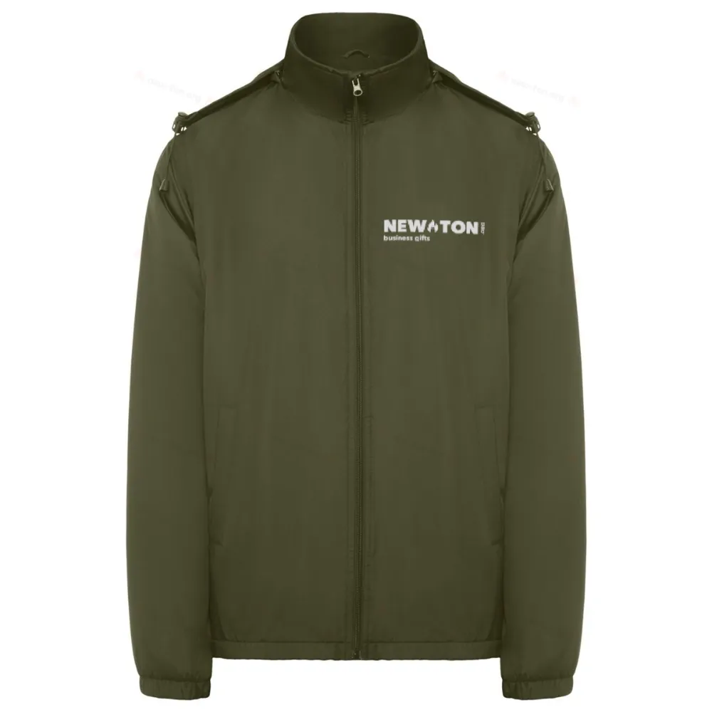Легкая водонепроницаемая куртка. Высокий воротник и складывающийся капюшон с регулировкой. Подкладка из микрофлиса. Передняя молния и защита для подбородка. Эластичные манжеты. Два боковых кармана на молнии. Внутренний нагрудный карман слева. Съемная этикетка. Водонепроницаемая. Ветрозащитная. Мужская модель ростом 184 см носит размер L, а женская модель ростом 174 см носит размер S.