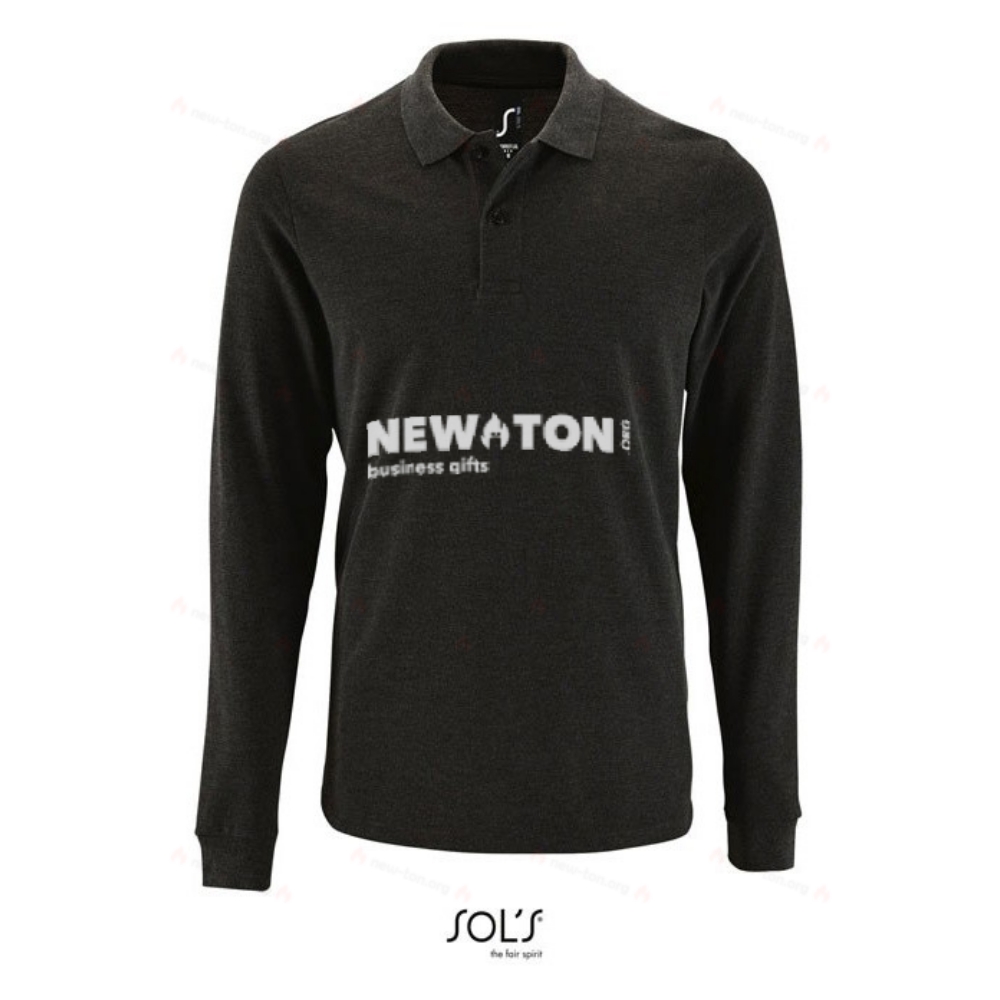 SOL'S PERFECT - Мужская длиннорукавая пике-поло с воротником и манжетами из ребристого полотна 1x1, планкой с двумя пуговицами в тон, лентой внутри воротника, съемной ярлычком на шее. Подробности о ткани: 180 г/м², 100% хлопок, пройденный тест на соответствие стандартам OEKO-TEX®. Продается только с нанесением рисунка