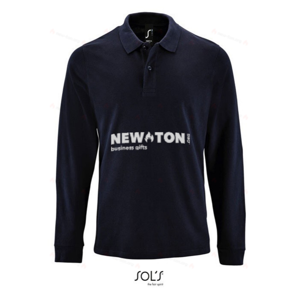 SOL'S PERFECT - Мужская длиннорукавая пике-поло с воротником и манжетами из ребристого полотна 1x1, планкой с двумя пуговицами в тон, лентой внутри воротника, съемной ярлычком на шее. Подробности о ткани: 180 г/м², 100% хлопок, пройденный тест OEKO-TEX®. Продается только с нанесением печати