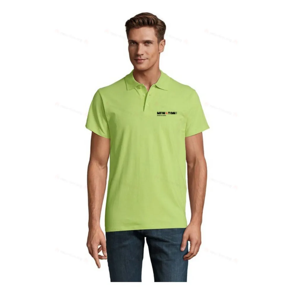 SOL'S SPRING II, мужское поло Pique с усиленным горловым швом, ребристым воротником, усиленной планкой с тремя однотонными пуговицами, прямым подолом с боковыми разрезами, боковым швом и рукавами без манжет, запасной пуговицей на внутренней стороне. Детали из ткани: 210G/M² 100% комбинированный кольцевой хлопок. Oeko-Tex®. Продается только с принтом. Для соответствия размеров, пожалуйста, обратитесь к таблице размеров в разделе документации к товару.