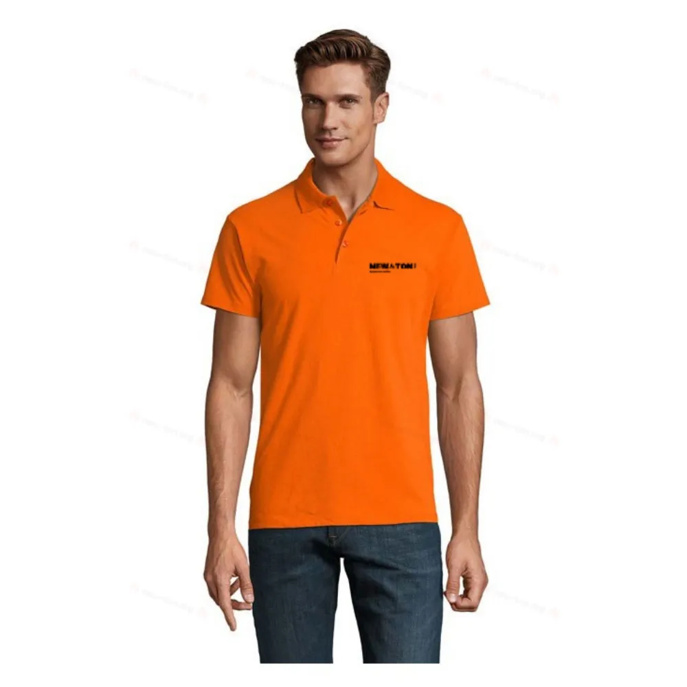 SOL'S SPRING II, мужское поло Pique с усиленным горловым швом, ребристым воротником, усиленной планкой с тремя однотонными пуговицами, прямым подолом с боковыми разрезами, боковым швом и рукавами без манжет, запасной пуговицей на внутренней стороне. Детали из ткани: 210G/M² 100% комбинированный кольцевой хлопок. Oeko-Tex®. Продается только с принтом. Для соответствия размеров, пожалуйста, обратитесь к таблице размеров в разделе документации к товару.