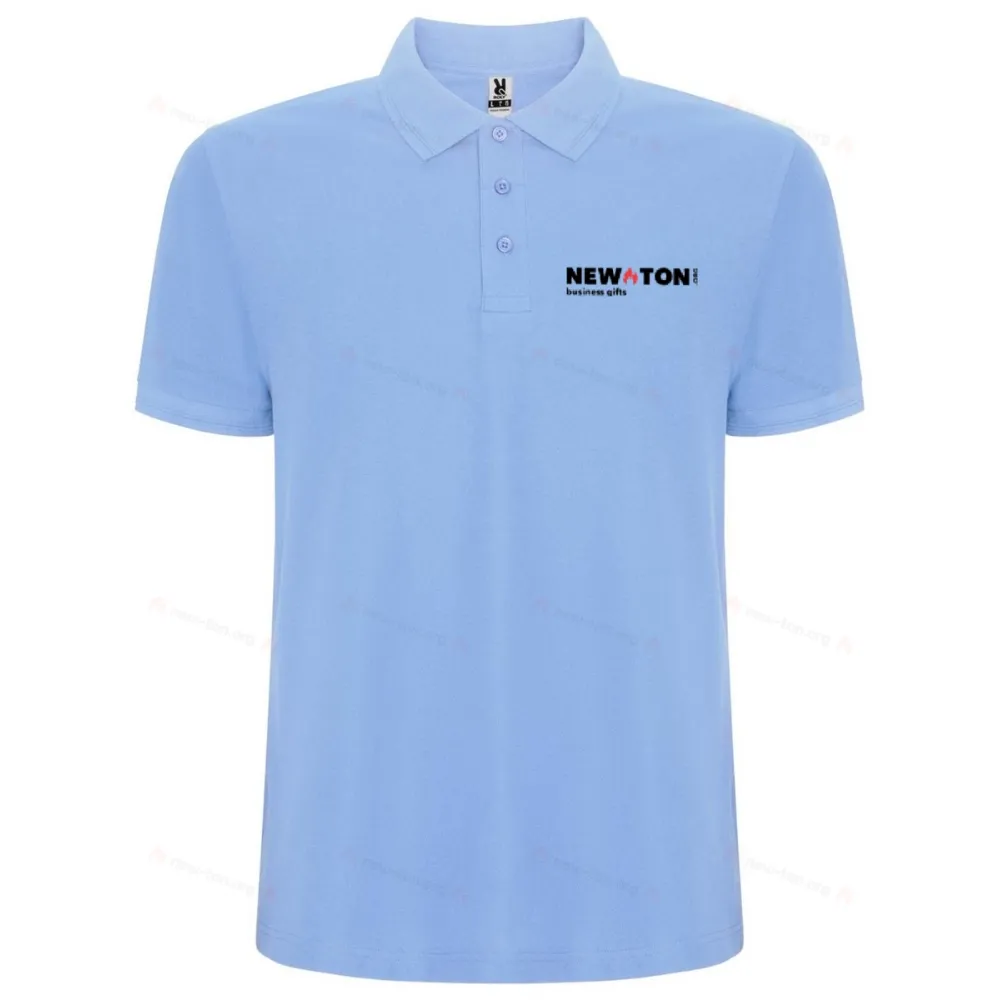 Футболка-поло с короткими рукавами. Воротник и края рукавов выполнены из ребристой ткани 1x1 с декоративными элементами. Планка с тремя пуговицами. Усиленные швы на воротнике. Боковые разрезы и опциональный карман. Съемная этикетка. Обработка против образования катышков.