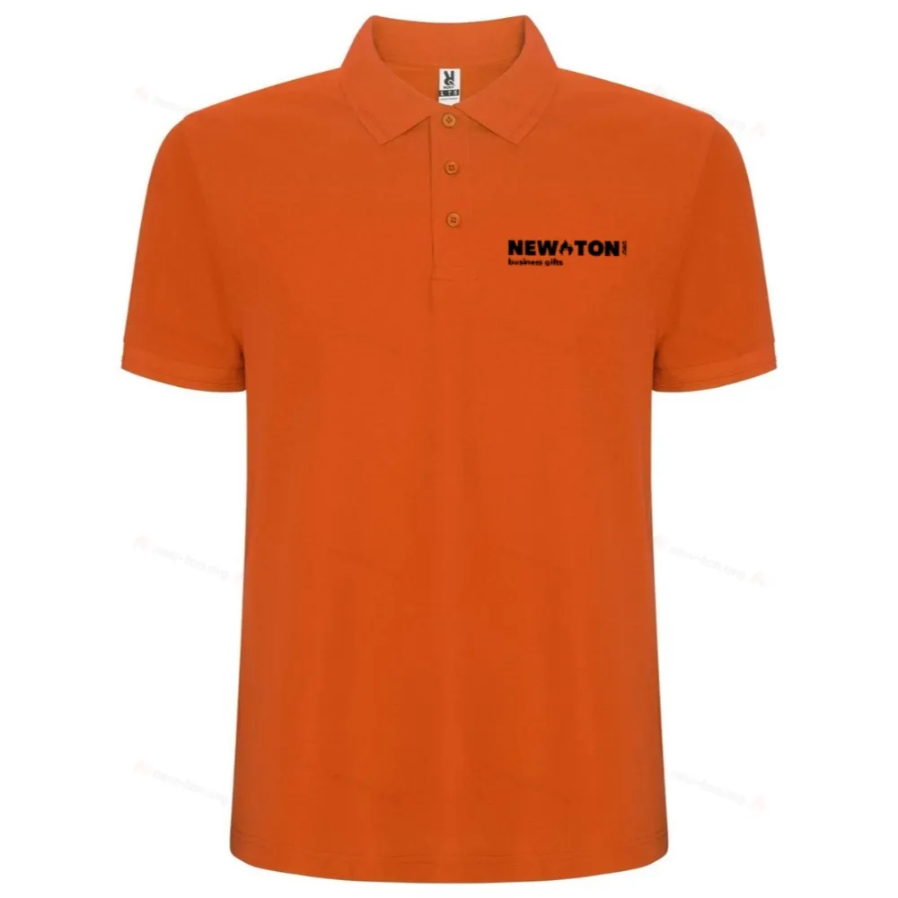 Футболка-поло с короткими рукавами. Воротник и края рукавов выполнены из ребристой ткани 1x1 с декоративными элементами. Планка с тремя пуговицами. Усиленные швы на воротнике. Боковые разрезы и опциональный карман. Съемная этикетка. Обработка против образования катышков.