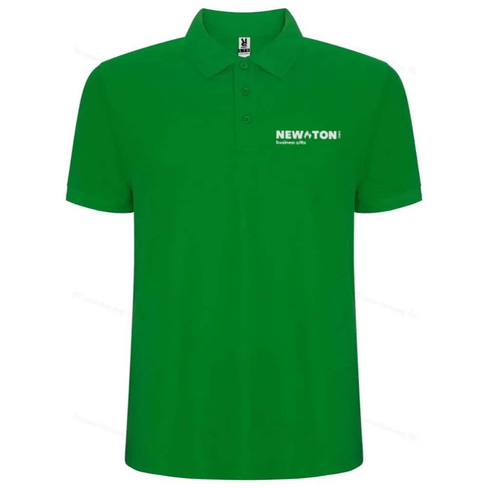 Футболка-поло с короткими рукавами. Воротник и края рукавов выполнены из ребристой ткани 1x1 с декоративными элементами. Планка с тремя пуговицами. Усиленные швы на воротнике. Боковые разрезы и опциональный карман. Съемная этикетка. Обработка против образования катышков.