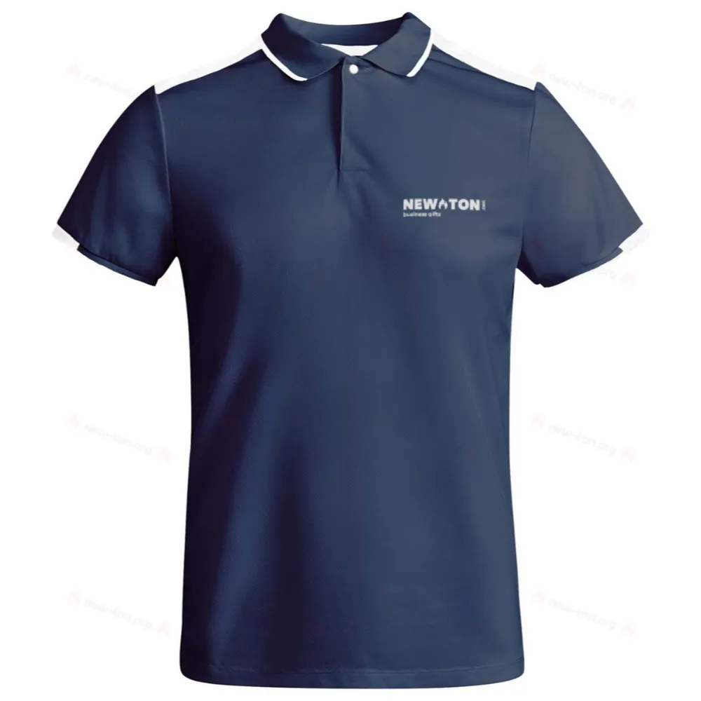 Антибактериальная ткань из переработанного полиэстера. Воротник и детали на рукавах с 1x1 ребристой вязкой. Усиленные закрытые швы на воротнике. Планка с двумя скрытыми застежками-кнопками. Контрастные детали и плечи. Боковые разрезы на подоле. Съемная этикетка.
