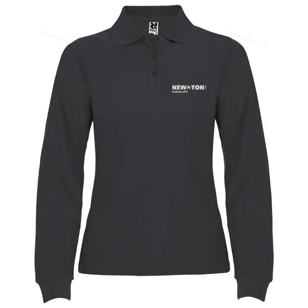 Поло с длинными рукавами, ребристым воротником и манжетами, планкой с тремя пуговицами и манжетами из эластана 1x1. Усиленные закрытые швы на воротнике. Приталенный крой. Съемная этикетка. Модель ростом 168 см и носит размер S.