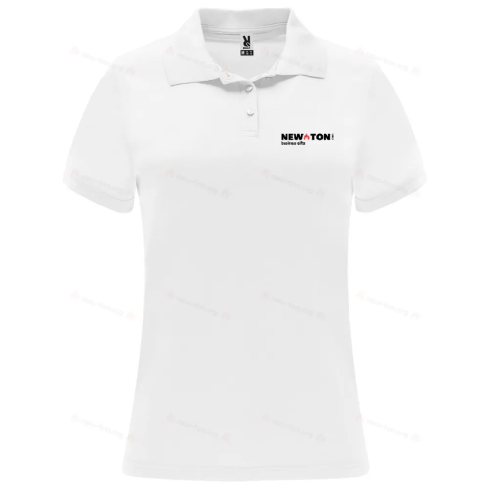 Женская техническая поло с коротким рукавом. Вязаный воротник с планкой на три пуговицы. Приталенный крой. Дышащая ткань, легко стирается и быстро сохнет. Съемная этикетка. Техническая ткань. Дышащая ткань. Модель ростом 173 см, носит размер S.