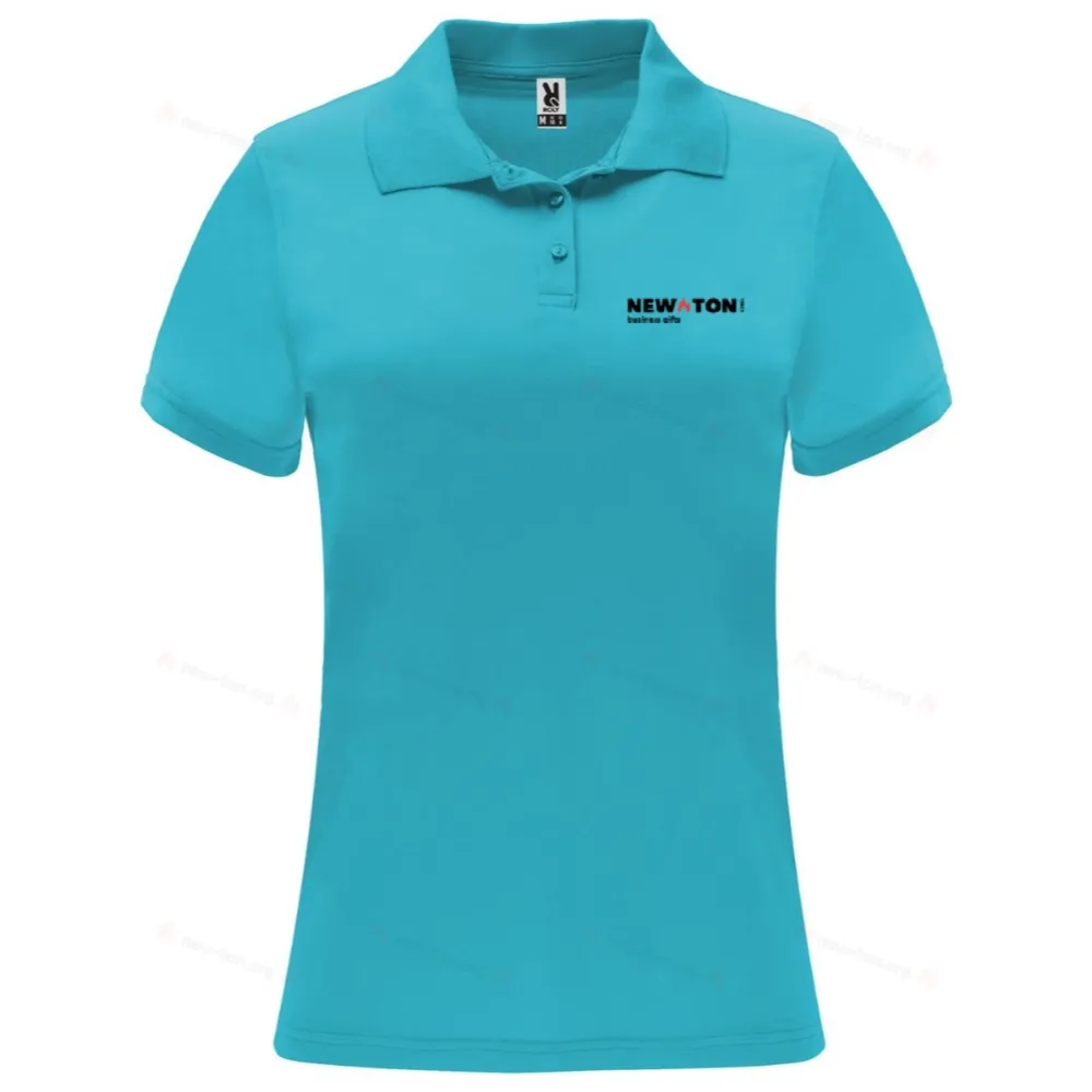 Женская техническая поло с коротким рукавом. Вязаный воротник с планкой на три пуговицы. Приталенный крой. Дышащая ткань, легко стирается и быстро сохнет. Съемная этикетка. Техническая ткань. Дышащая ткань. Модель ростом 173 см, носит размер S.