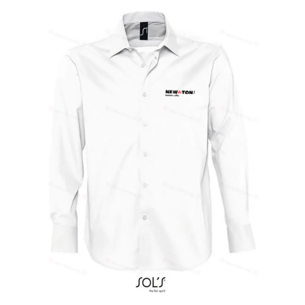 SOL'S BRIGHTON, мужская рубашка с длинным рукавом из эластичного материала, 97% хлопок - 3% эластан, поплин-стрейч 140, приталенный крой, длинные рукава, воротник с одной пуговицей, манжеты с 2 пуговицами и прорезью, планка на 7 пуговицах в тон. Информацию о соответствии размеров см. в таблице размеров в разделе «Документация по продукту».