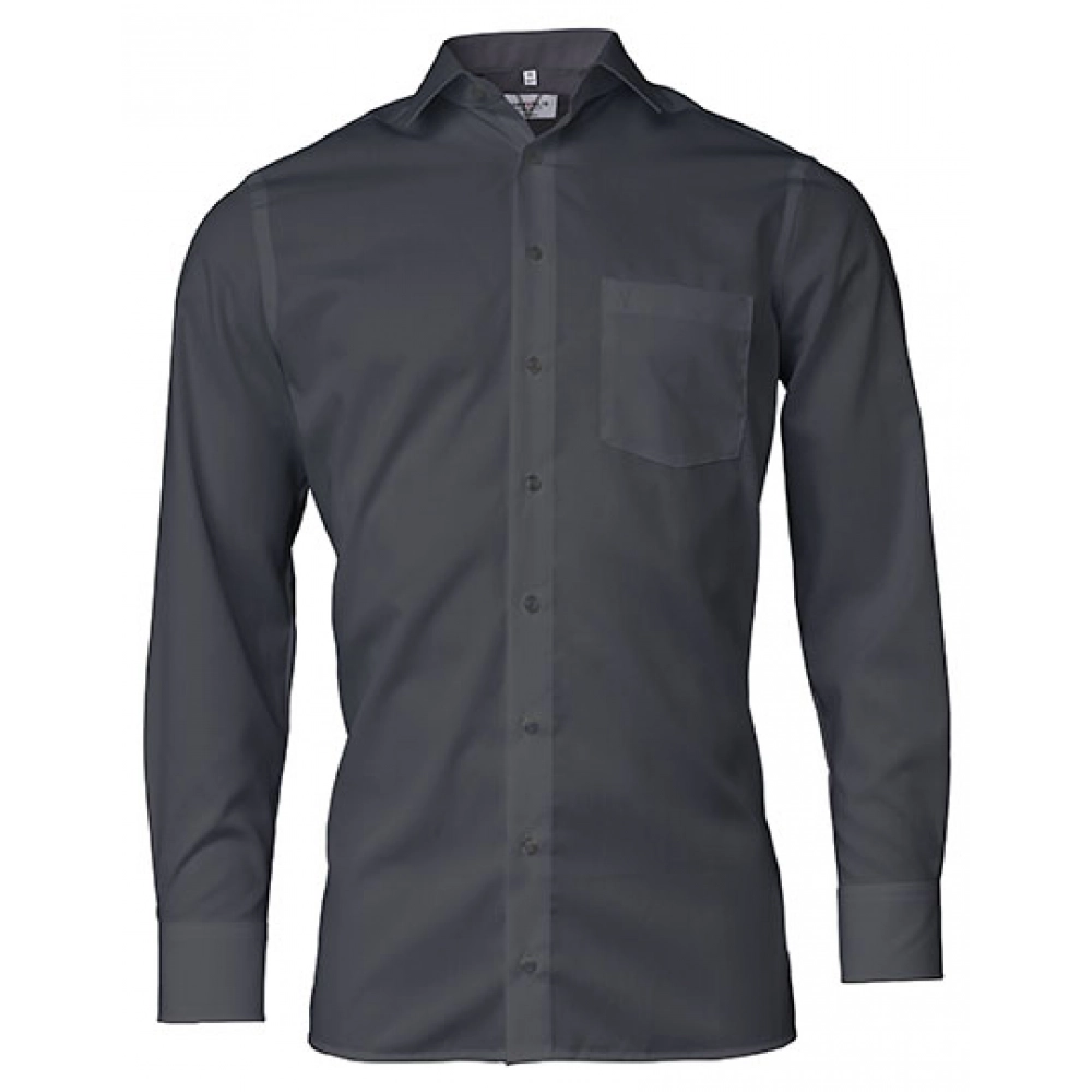 Свободный крой | Не требует глажки | Воротник New Kent | Нагрудный карман с вышивкой | Длинные рукава | Белый, темно-синий, черный: 100% поплин; голубой, антрацит: 100% шамбре | Белый можно стирать при температуре до 60°C