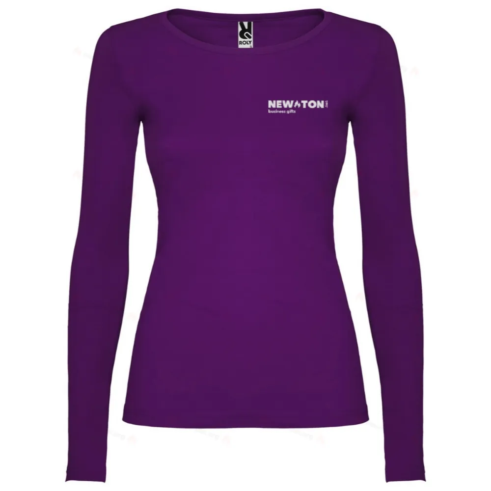 Полуприлегающая футболка с длинными рукавами и аккуратно обработанным вырезом. Без манжет. Боковые швы. Съемная этикетка.