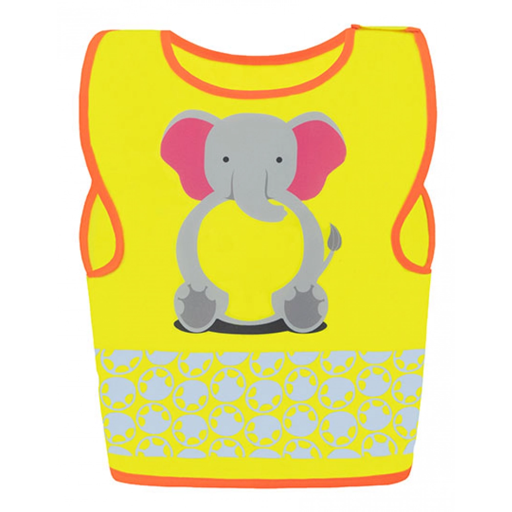Детский защитный жилет с изображениями животных | Область на животе животных предоставляет удобное место для печати | Сегментированные светоотражающие полосы в виде отпечатков лап | Практичная застежка на липучке сбоку и на плече | Сертифицирован в соответствии с EN 17353