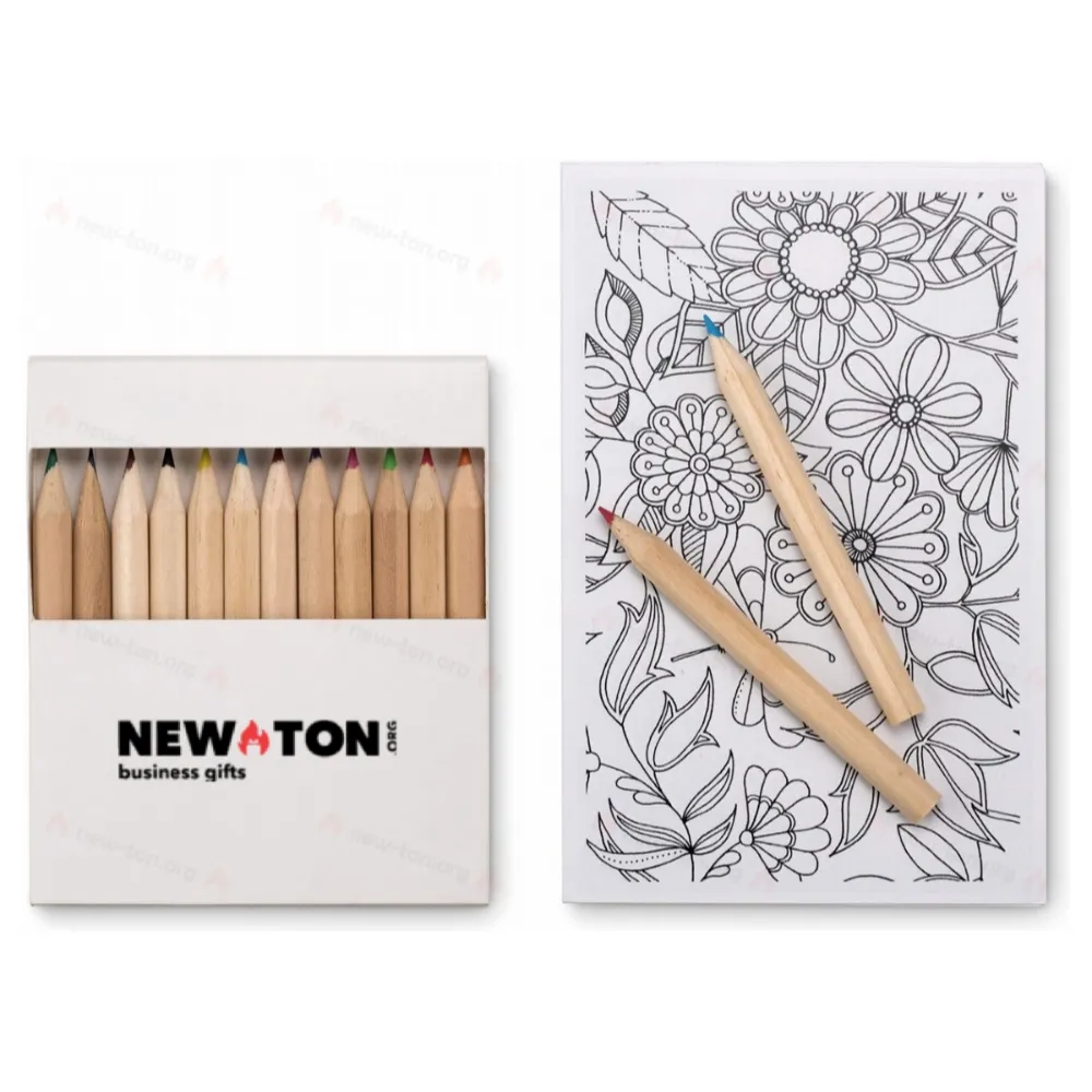 Набор карандашей для взрослых с 10 рисунками и 12 карандашами.