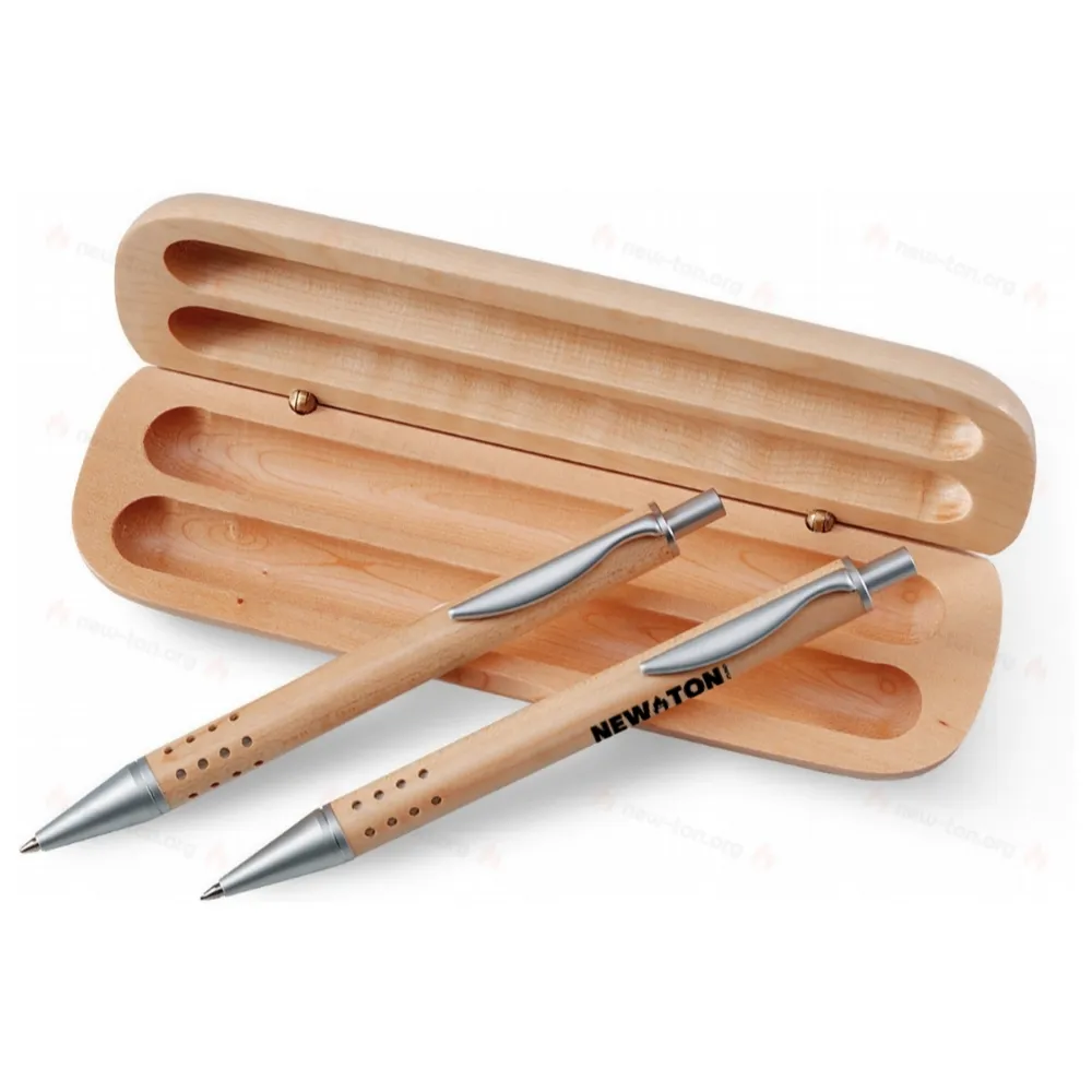 Набор деревянные карандаш и ручка в подарочном деревянном футляре.