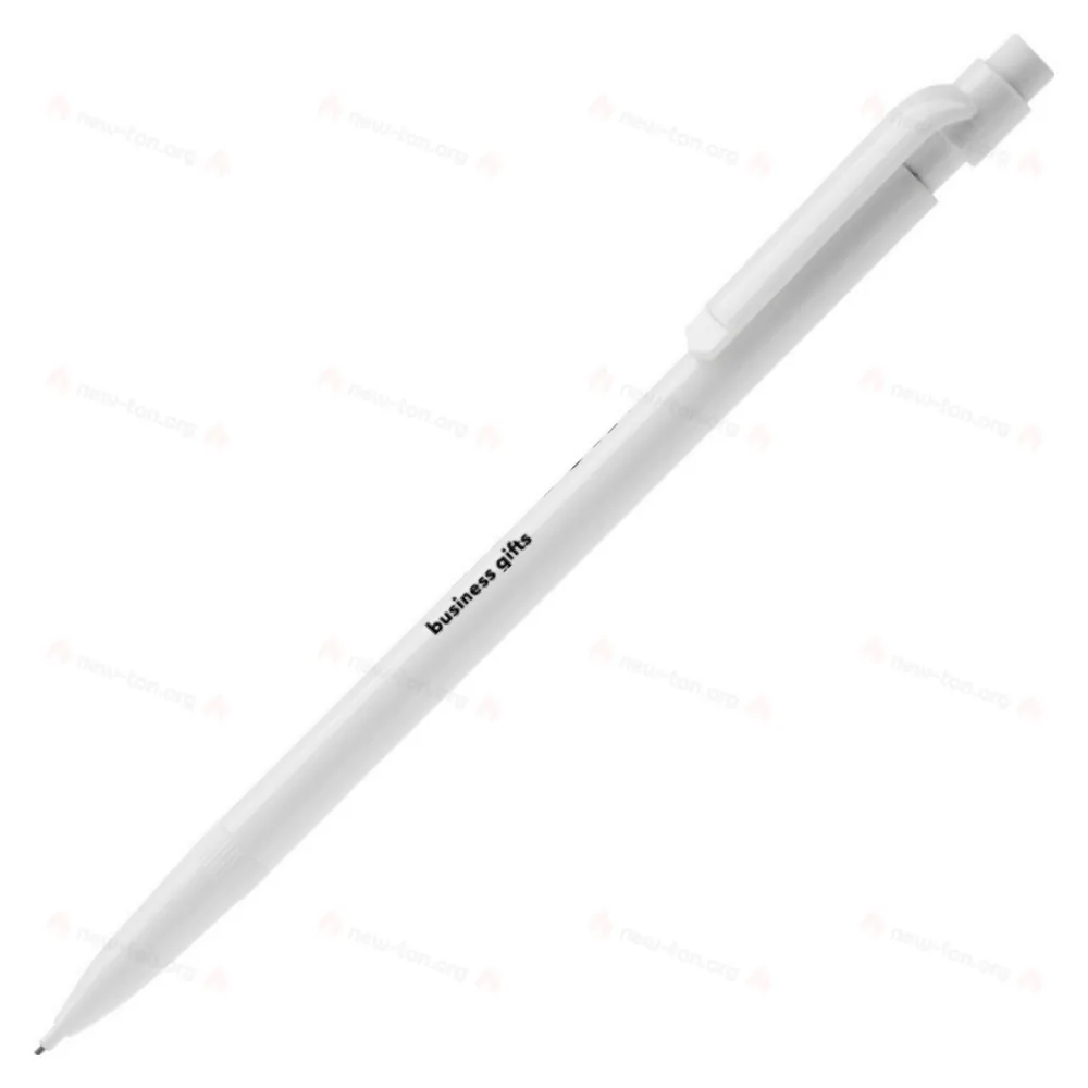 Карандаш с механическим толканием, с нажимным механизмом и ластиком. Доступен в нескольких цветах. Легко пополнять.