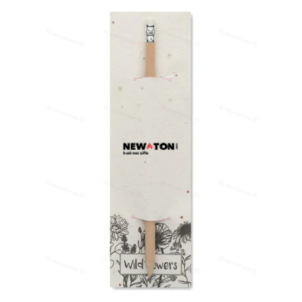 Карандаш из натурального дерева с ластиком. Поставляется в бумажном конверте с семенами (полевые цветы).