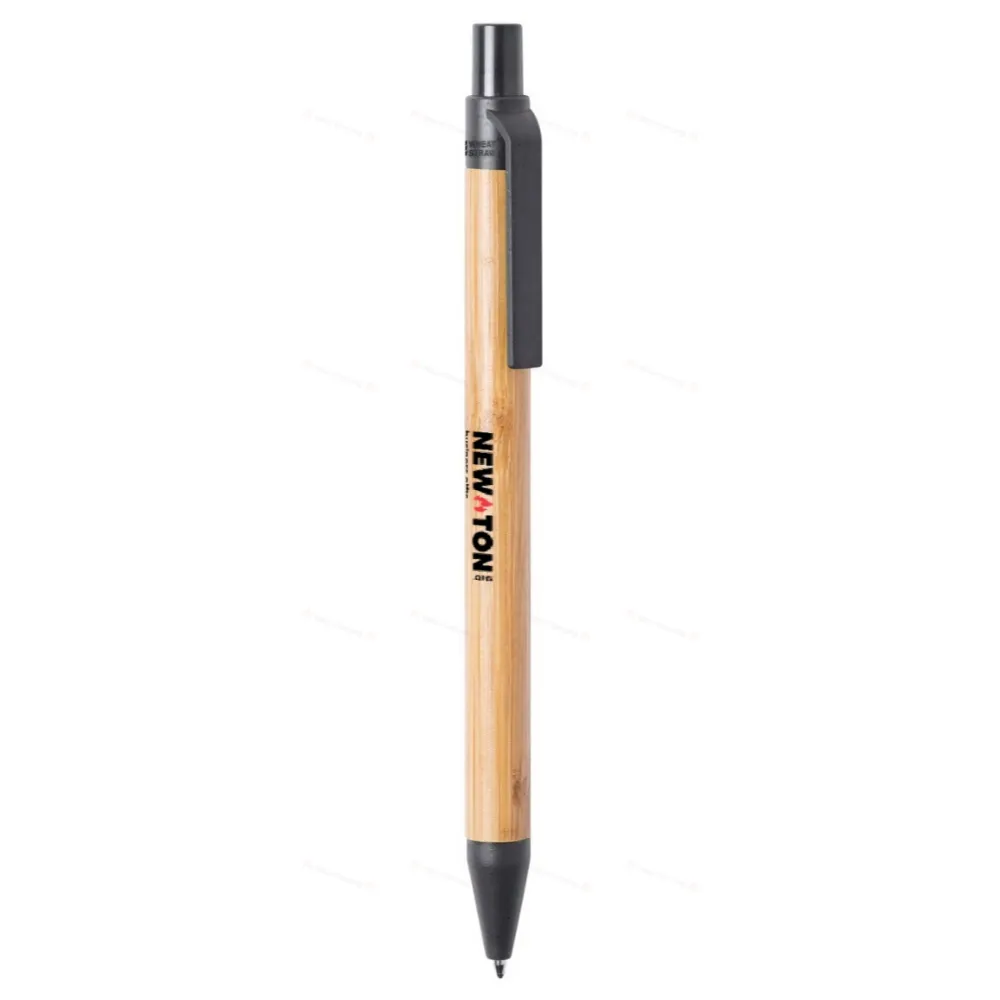 Бамбуковая шариковая ручка с пластиковыми деталями из экологически чистой пшеничной соломы. С синим стержнем.