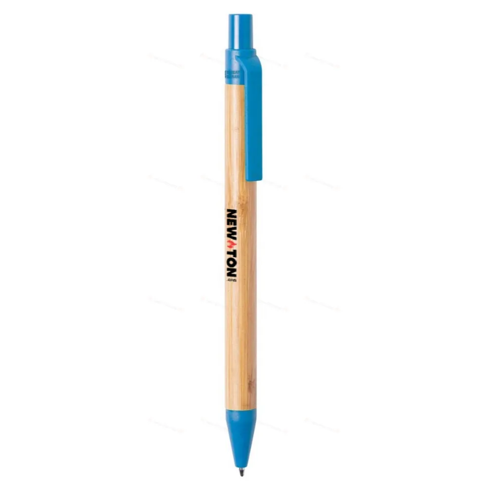 Бамбуковая шариковая ручка с пластиковыми деталями из экологически чистой пшеничной соломы. С синим стержнем.