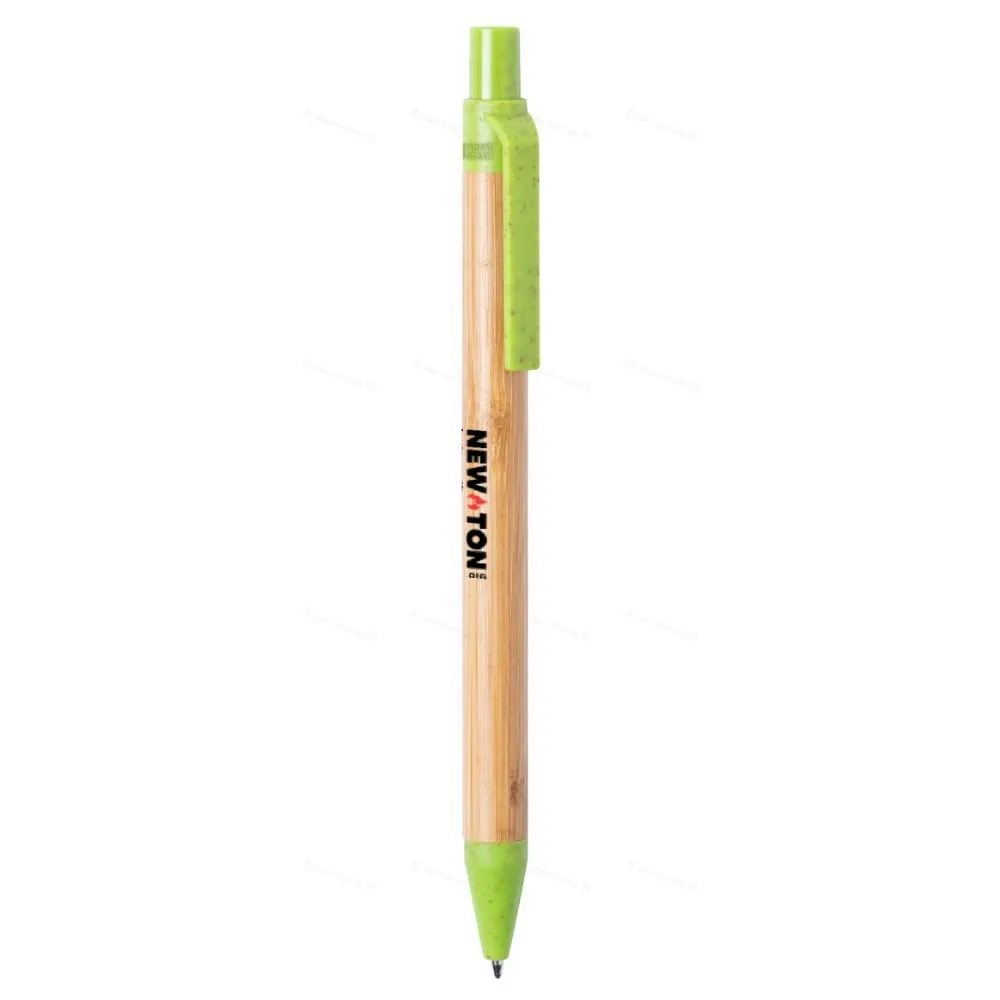 Бамбуковая шариковая ручка с пластиковыми деталями из экологически чистой пшеничной соломы. С синим стержнем.