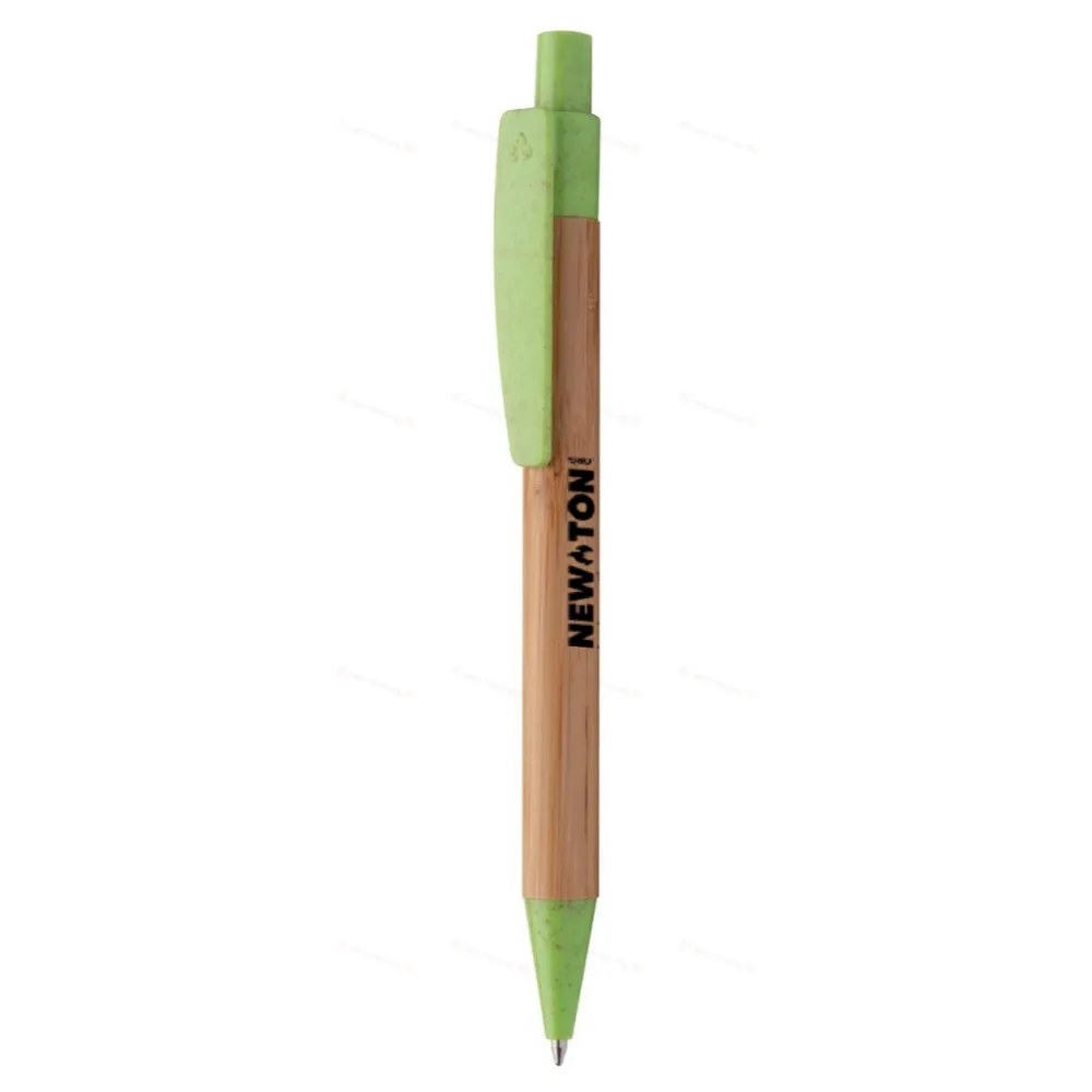 Бамбуковая шариковая ручка с пластиковым зажимом и наконечником из экологически чистой пшеничной соломы. С синим стержнем.