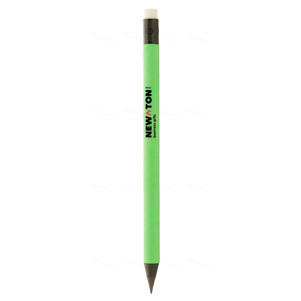 Переработанная бумага, долговечная ручка без чернил с черными деталями и ластиком. С металлическим сплавом на кончике, который окисляет бумагу. Эта ручка пишет так же, как карандаш, и ее также можно стереть.