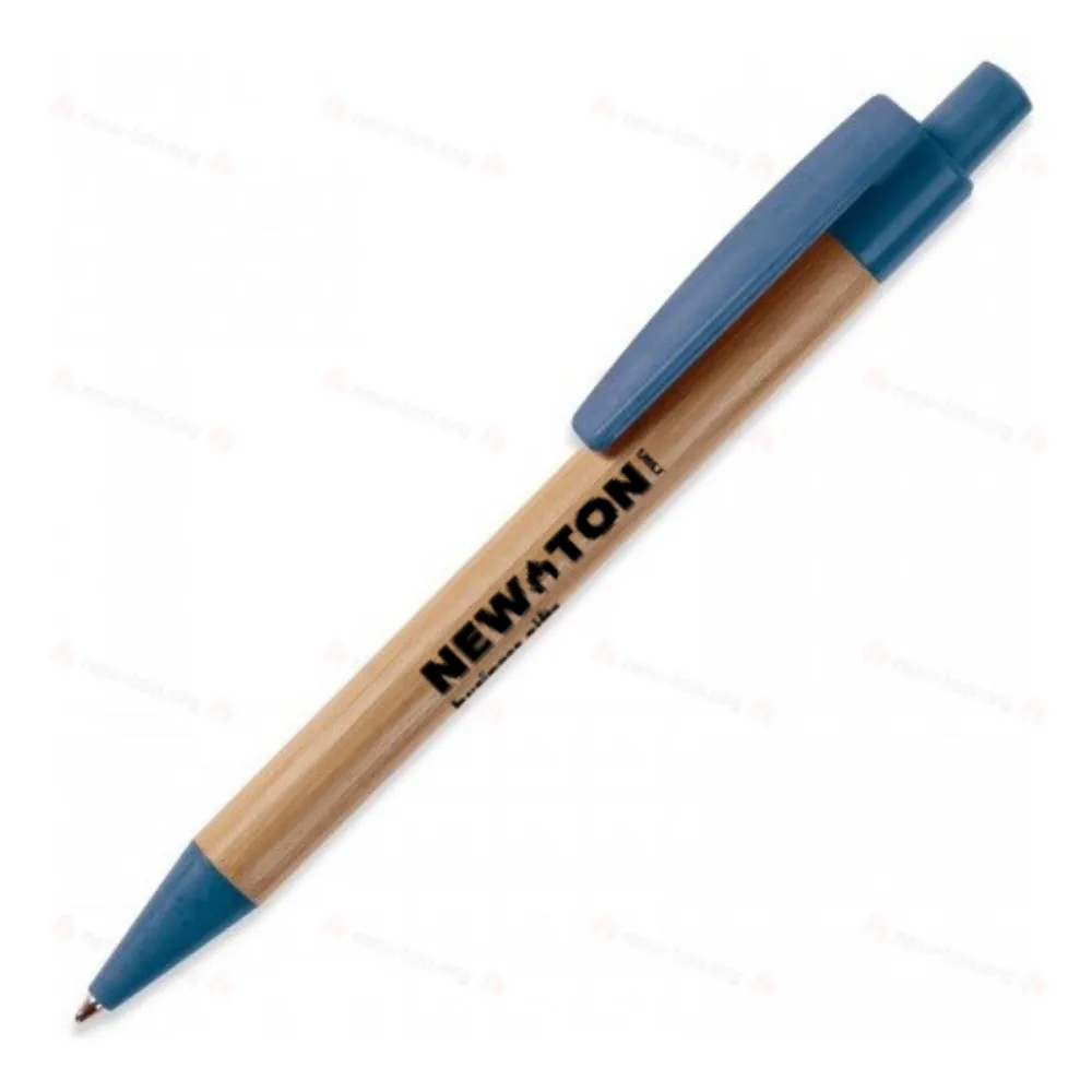 Шариковая ручка из бамбука с зажимом, толкателем и наконечником из соломы. С пластиковым стержнем X20 с синей надписью.